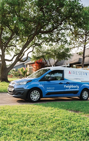 Aire Serv van parked at a customer's home.